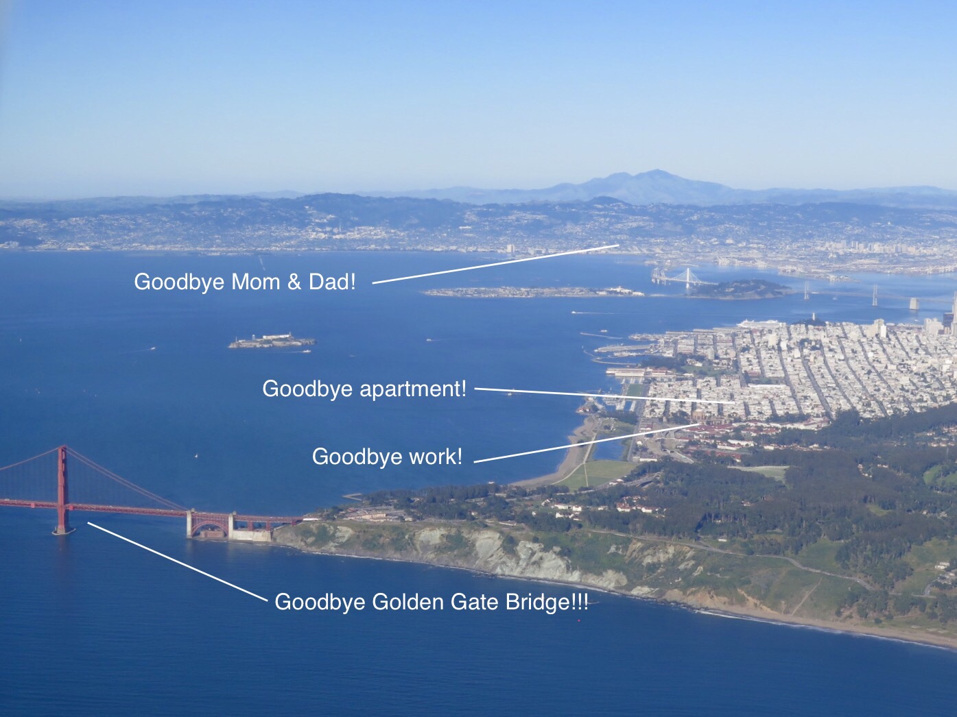 Our flight from SFO to Dublin was on-time and uneventful, other than waiting at the gate for a bit while a passenger decided to get off the plane and then waiting while TSA came and swept her seat. Our plane flew over San Francisco and it was a clear day so we got a really beautiful view of our old home while we were gaining altitude; a great way to say goodbye to the Bay Area!