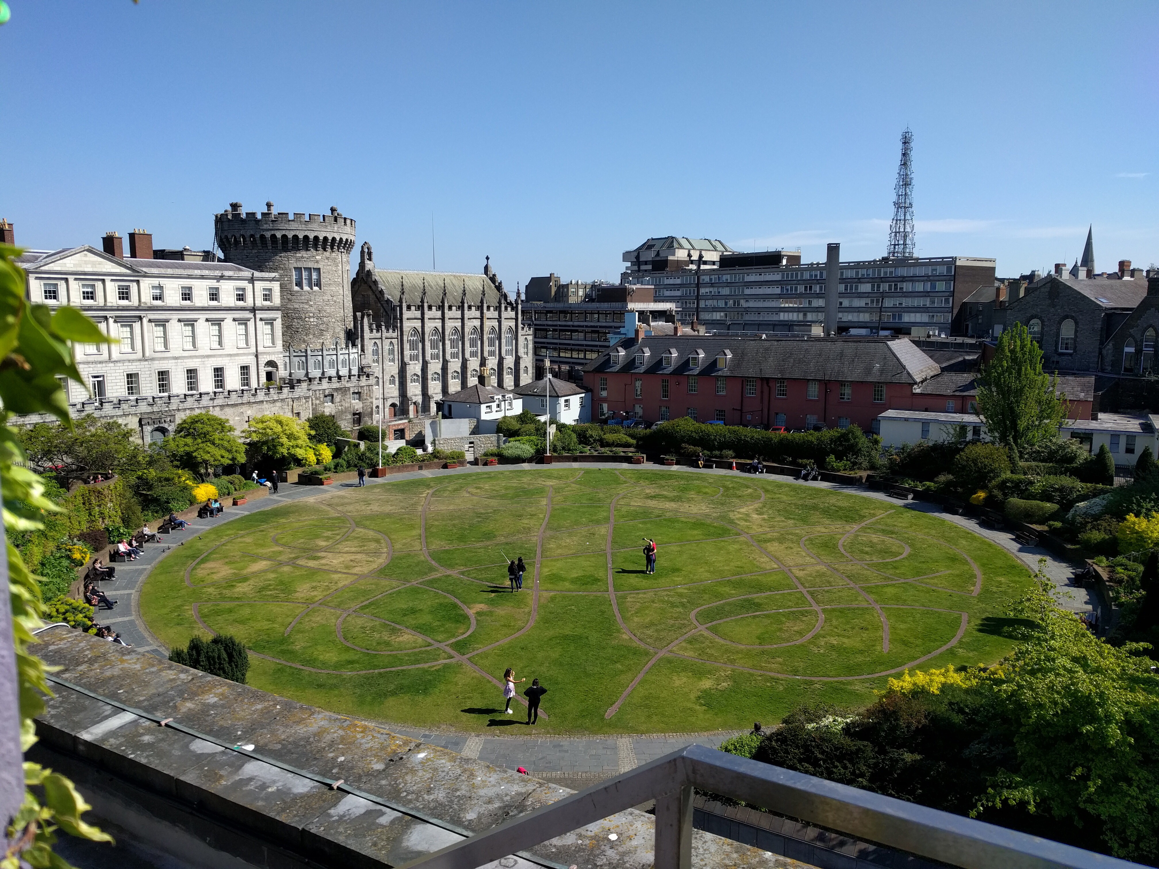 I wanted to check out the Charles Beatty Library which houses one of the greatest collections of ancient printed works and medieval illuminated manuscripts in the world, as well as a large collection of religious and spiritual documents from all over the globe. We had heard from some folks that the Book of Kells at Trinity College wasn’t worth seeing because they only show one page at a time. The Charles Beatty collection did not disappoint and we saw tons of incredible things! It was a great place to start our exploring as it was a super close walk from our Airbnb and it’s a national library which made it free to enter. Unfortunately, no photos allowed of the works in the library, so please enjoy this view of the Dublin Garden from the terrace at the top of the library.