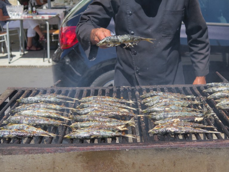 Matosinhos: We had heard about this little seaside town just north of Porto and wanted to visit because we had heard tales of a street filled with fisherman grilling their fresh catches. It is about 10km away from where we were staying in Porto so we decided to hike it in preparation for our upcoming Alpine hiking. It was a very nice, but windy, walk and we had some beautiful views of the coast line and the ocean. And then we got to the town of Matosinhos, which isn’t very interesting on its own except for this one street where the air is completely filled with the smoke of a gazillion outdoor grills and the sidewalks are packed with people overflowing from the restaurants. It was really fun to see! All of the restaurants were pretty much serving the same things (whatever is freshest, local, and in season), and everything was being grilled to-order out on the street. We had a delicious lunch of dorado, sardines, potatoes, and vinho verde before trying to figure out the bus to take us home.