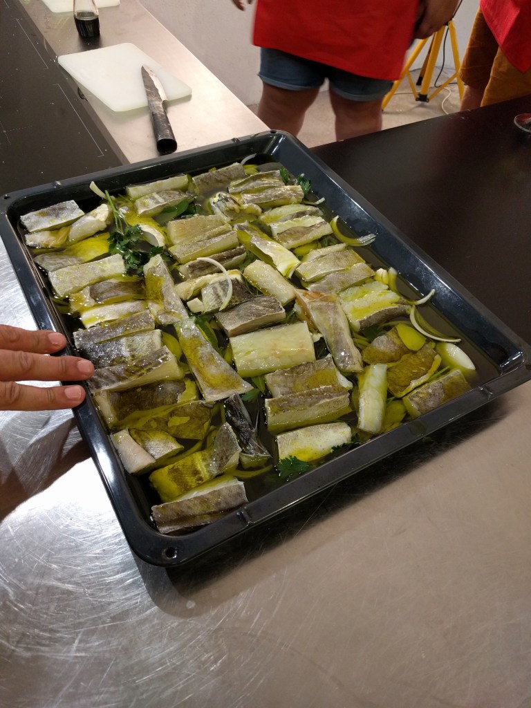 Cooking class: Since we had done a food tour in Lisbon, we wanted to do a Portuguese cooking class in Porto. There were just ten of us in the class which was led by a professional personal chef. We learned how to make some traditional Portuguese dishes: scrambled eggs with alheira sausage, bacalhau in the oven with onions and herbs, “punched” potatoes, and pastel de nata for dessert. It was fun to learn more about traditional food and ingredients, we learned some new techniques, and the bacalhau was really tasty, but the class wasn’t very hands-on and the wine was flowing quite freely so by the end it devolved into the chef just doing everything. But we still had fun, and met a couple from Poland who were trying to decide where to move to in Portugal, and a funny woman from New Zealand with a very heavy and impossible-to-understand accent who comes to Porto for several months with “[her] man” every year and invited us to come over for drinks some time (we sadly didn’t take her up on it).